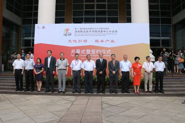 第十一届中国(深圳)国际文化产业博览交易会深圳职业技术学院创意中心分会场组委会主任、学校党委书记、校长刘洪一致开幕辞。他说,作为第一所承办文博会分会场的高职院校,我们向海内外的同行和朋友们展示了学校在文化创意类产业人才培养、科技研发、技术服务和社会服务的各项成果。今年我校第二届文博会分会场呈现出6个鲜明特点:1、创新创意,服务产业。紧密契合深圳文化创意产业发展的战略,紧贴市场需求,自觉站在科技发展的前沿;2、跨界融合,引领发展。突出了文化、创意、生活相结合,每个产品都体现了当前跨界发展的重要趋势;3、开放联动,合作共赢。我们邀请了海内外50家兄弟院校、合作企业、行业、政府机构、社会第三方共同参与文博盛会;4、突出育人,强化职教特色。本次把产教融合、文化引领产业作为学校文博会的一个重要主题,让师生的作品直接面向产业,体现了我校育人和服务社会的宗旨;5、注重转化,面向市场。在开幕式上,我们将和已经谈成项目的部分合作企业进行现场签约,还有大批与学校合作的企业正在洽谈中;6、凸显创客,激发梦想。我校还参加了本届文博会主会场的深圳市创客空间。空间集中展示了学校学生创新创业活动的精华,激发了同学们创意的梦想。