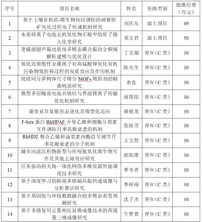 近日,国家自然科学基金委员会公布了2025年度集中接收申请项目的评审结果,学校再创佳绩,共获批14项,其中面上项目2项,青年项目(C类)12项,批准经费总额459万元。